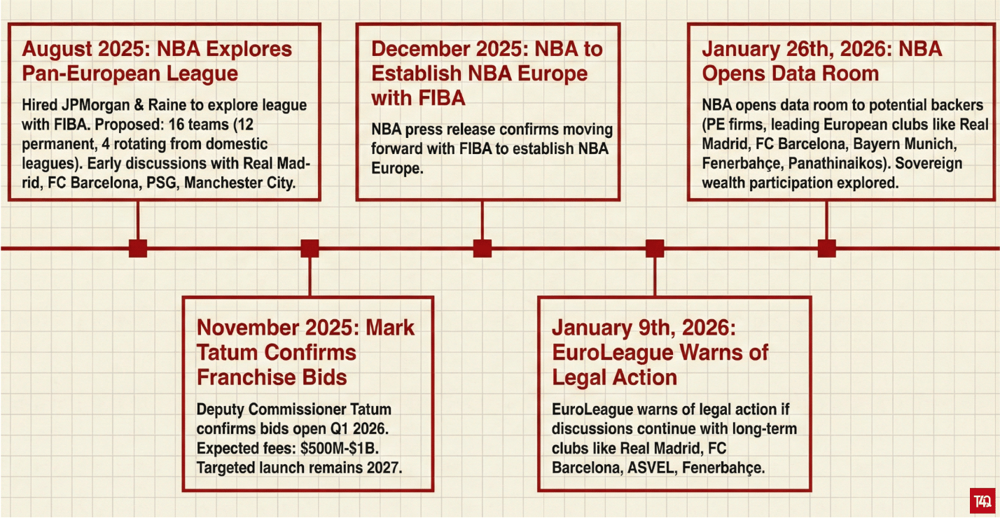 Signals the NBA’s transition from exploratory discussions to a more formal capital-raising process for a potential European league [SBJ]
