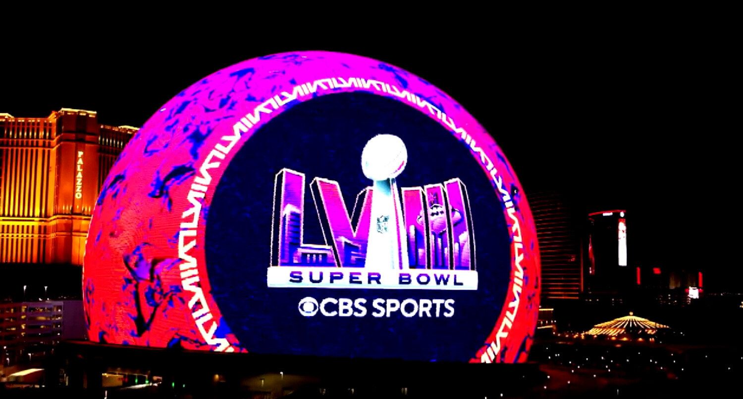 Photo Creds: Super Bowl LVIII advertised on the Sphere.